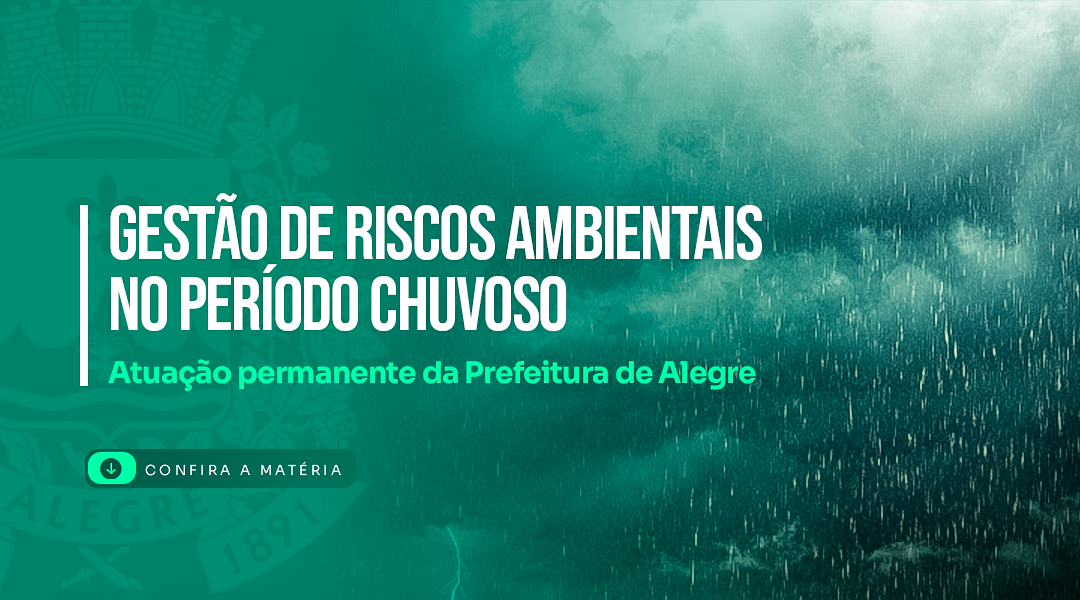 Localizado no Sul do Espírito Santo, Alegre apresenta características climáticas e de ocupação do território que exigem atenção permanente do poder público, especialmente entre os meses de novembro e março, quando há maior concentração de chuvas. Nesse contexto, a prevenção de riscos ambientais é tratada como eixo estruturante da gestão municipal.